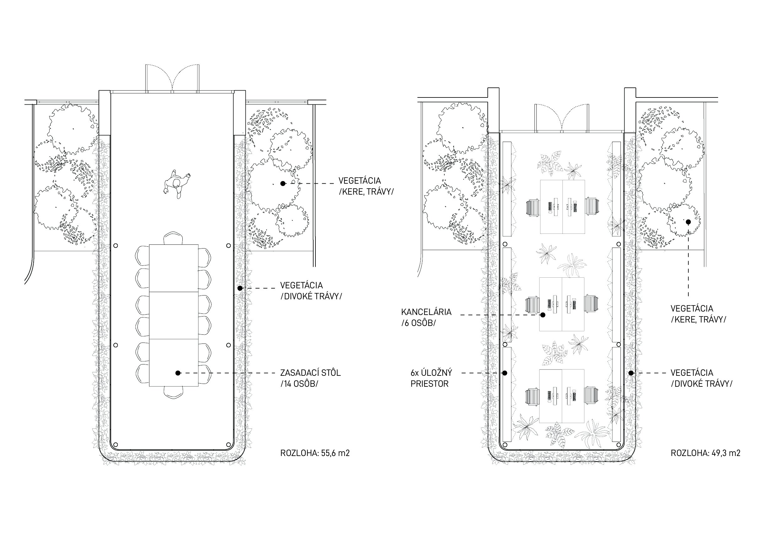 Na 2. NP sa nachádza veľká zasadacia miestnosť pre 14 ľudí.